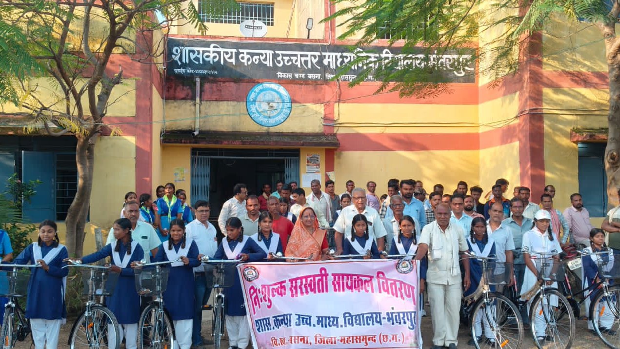 काकाखबरीलाल@भंवरपुर। शासकीय कन्या उच्चतर माध्यमिक विद्यालय भंवरपुर में विगत सोमवार नि:शुल्क सरस्वती साइकिल योजना के अंतर्गत कक्षा 9वीं के 112 छात्राओं को साइकिल वितरण किया गया। इस कार्यक्रम के मुख्य अतिथि देवकी पुरुषोत्तम दीवान सदस्य जिला पंचायत महासमुंद थे। कार्यक्रम की अध्यक्षता कृष्ण कुमार सिदार सरपंच ग्राम पंचायत भंवरपुर ने किया। विशिष्ट अतिथि के रूप में पालक समिति के अध्यक्ष रुपसाय साहू, उपाध्यक्ष मोहित लाल नायक, समिति सदस्य युधिष्ठिर कर, गुलाब किशोर स्वर्णकार, सोमनाथ पटेल, घसिया बसंत, शौकी लाल चौधरी, मोहनलाल पटेल उपस्थित थे। कार्यक्रम का प्रारंभ मां सरस्वती की पूजा अर्चना से किया गया। सरस्वती वंदना पश्चात अतिथियों का स्वागत किया गया। अतिथियों ने कार्यक्रम में अपने विचार व्यक्त किये। घसिया बसंत में छत्तीसगढ़ी भाषा में छात्राओं को शिक्षा का महत्व समझाया तथा रोज स्कूल आने की बात कही। युधिष्ठिर कर ने इस योजना का लाभ बताते हुए छात्राओं को अध्ययन अध्यापन सुधार संबंधी समझाये दी। गुलाब किशोर स्वर्णकार ने छात्राओं को साइकिल को सुरक्षित रूप से चलाने तथा यातायात नियमों का पालन करने को कहा। मुख्य अतिथि देवकी पुरुषोत्तम दीवान ने छात्राओं को साइकिल मिलने पर शुभकामनाएं दी। उन्होंने कहा कि महिलाएं किसी भी क्षेत्र में पीछे नहीं है। आज महिलाएं सभी क्षेत्रों में आगे बढ़कर अपना नाम रोशन कर रही है। आप सभी पढ़ लिखकर आगे बढ़िये तथा अपना, अपने परिवार का, क्षेत्र का, विद्यालय का नाम रोशन कीजिए।