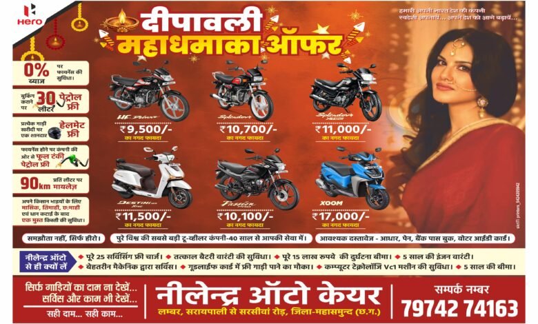 नीलेद्र आंटो केयर दीपावली महाधमाका आंफर : 0℅ ब्याज पर फायनेंस की सुविधा