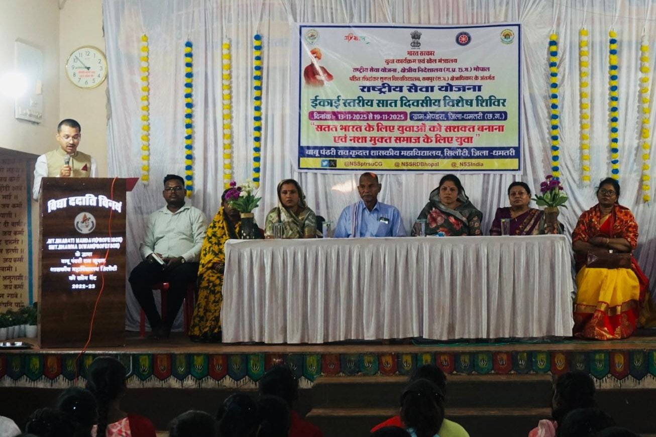 काकाखबरीलाल@डेस्क रिपोर्ट। बाबू पंढरी राव कृदत्त शासकीय महाविद्यालय, सिलौटी जिला-धमतरी (छ.ग.) की राष्ट्रीय सेवा योजना इकाई द्वारा ग्राम पंचायत भेण्डरा में सात दिवसीय विशेष शिविर का आज दिनांक 13.11.2025 को उद्घाटन समारोह संपन्न हुआ। यह सात दिवसीय विशेष शिविर “सतत भारत के लिए युवाओं को सशक्त बनाना एवं नशा मुक्त समाज के लिए युवा” थीम पर आयोजित किया गया है। इस कार्यक्रम की मुख्य अतिथि श्रीमती गीतेश्वरी साहू, अध्यक्ष जनपद पंचायत कुरुद एवं जन भागीदारी समिति शासकीय महाविद्यालय सिलौटी तथा विशिष्ट अतिथि श्रीमती ज्योति हिरेन्द्र मंडावी, सरपंच ग्राम पंचायत भेण्डरा रहीं। इस कार्यक्रम की अध्यक्षता डॉ. भावना कमाने, प्राचार्य बाबू पंढरी राव कृदत्त शासकीय महाविद्यालय सिलौटी द्वारा की गई। सर्वप्रथम अतिथियों ने मां सरस्वती एवं विवेकानंद जी के छायाचित्र पर माल्यार्पण कर तथा दीप प्रज्वलित कर कार्यक्रम का शुभारंभ किया। श्रीमती गीतेश्वरी साहू ने इस सात दिवसीय शिविर में सम्मिलित हो रहे स्वयंसेवकों को संबोधित करते हुए कहा कि राष्ट्रीय सेवा योजना सभी स्वयंसेवकों में लीडरशिप स्किल, टीमवर्क और संगठनात्मक क्षमताओं को विकसित करने के अवसर प्रदान करता है। उन्होंने स्वयंसेवकों को संबोधित करते हुए कहा कि इस साथ दिवसीय शिविर का थीम नशा मुक्ति है जो आज समाज को दूषित कर रहा है। इस समस्या का निदान युवाओं द्वारा ही किया जा सकता है और इसमें राष्ट्रीय सेवा योजना के स्वयंसेवकों की बड़ी महत्वपूर्ण भूमिका है जो ग्राम में नशापान से होने वाली समस्या और उसके दुष्परिणामों से लोगों को परिचित करा सकते हैं तथा नशा मुक्त समाज के निर्माण हेतु प्रेरणा दे सकते हैं। विशिष्ट अतिथि के रूप में कार्यक्रम में उपस्थित रहीं ग्राम भेण्डरा की सरपंच श्रीमती ज्योति हिरेन्द्र मंडावी ने इस सात दिवसीय राष्ट्रीय सेवा योजना शिविर के आयोजन पर हर्ष व्यक्त करते हुए कहा की इससे समाज के निर्माण में युवाओं की भूमिका को अधिक बल मिलेगा तथा उन्होंने स्वयंसेवकों को नशामुक्त समाज के नवनिर्माण में अहम योगदान देने का आह्वान किया। कार्यक्रम की अध्यक्षता कर रही महाविद्यालय की प्राचार्य डॉ. भावना कमाने ने स्वयंसेवकों को उनके कर्तव्यों को पुनः स्मरण कराया तथा मानवता की सेवा करने और निरंतर कार्य करने के लिए प्रेरित किया। महाविद्यालय के राष्ट्रीय सेवा योजना कार्यक्रम अधिकारी हितेश कुमार नेताम ने शिविर के सात दिवसों में होने वाले विभिन्न गतिविधियों का विवरण प्रस्तुत किया। कार्यक्रम में विशेष अतिथि के रूप में गणेश राम साहू, नंदकुमार साहू, पीतांबर निषाद, स्वयंसेवक दुलार सिंह सिन्हा, श्रीमती सुनीता निषाद, शकुन साहू, टी. आर. साहू, प्र
