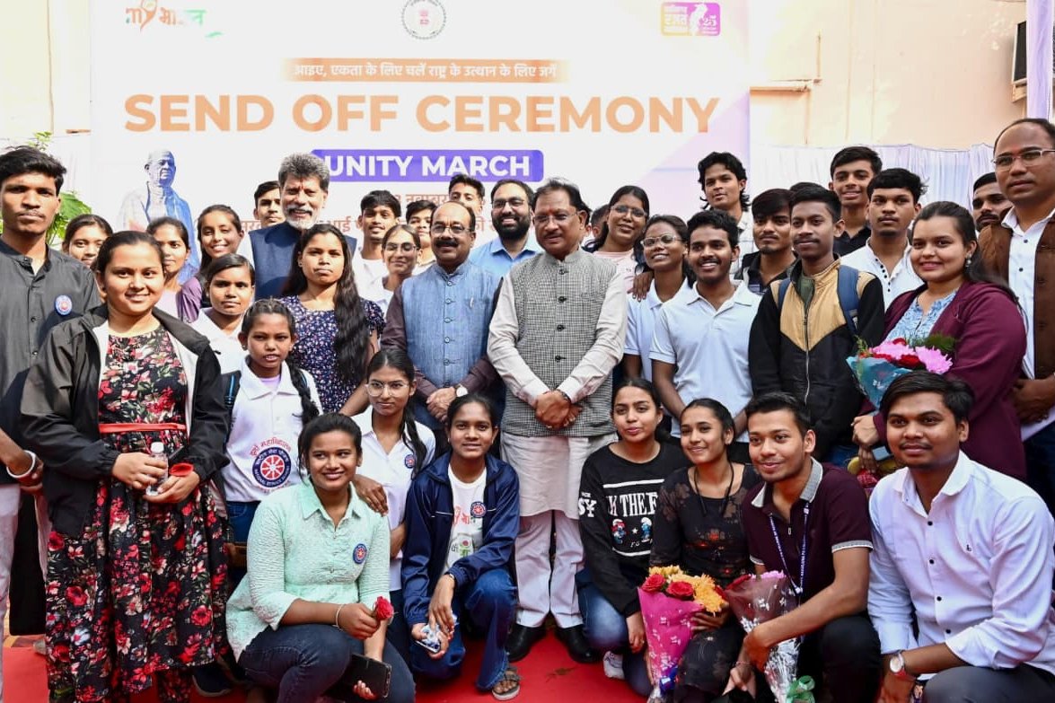 मुख्यमंत्री विष्णुदेव साय ने यूनिटी मार्च के लिए राज्य के 68 युवाओं के दल को हरी झंडी दिखाकर किया रवाना