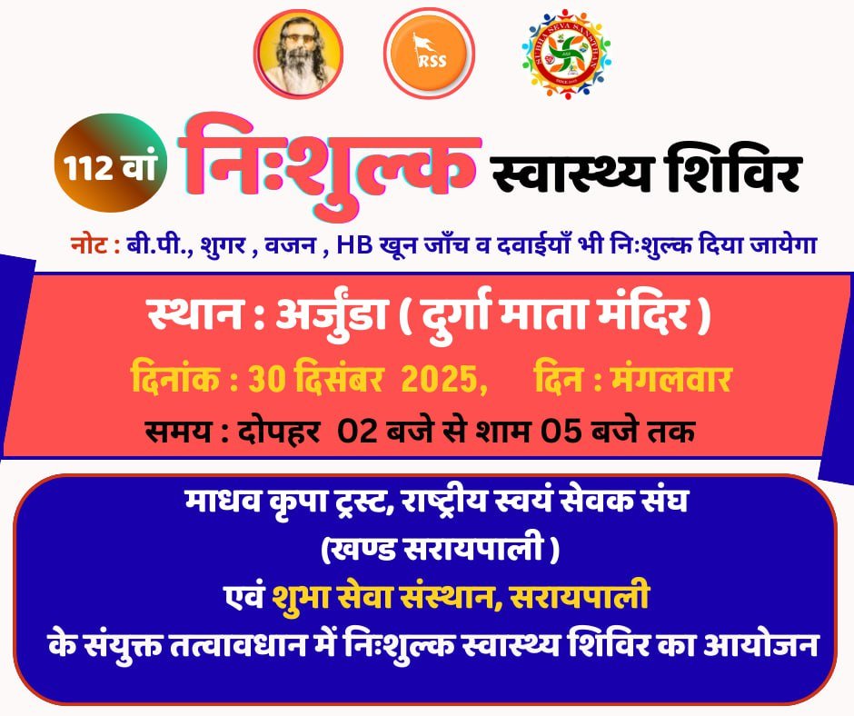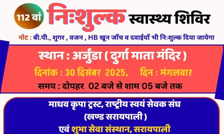 Home/सरायपाली/30 दिसम्बर को अर्जुडा में नि: शुल्क स्वास्थ्य शिविर का आयोजन जानिए पुरी डिटेल्स सरायपाली 30 दिसम्बर को अर्जुडा में नि: शुल्क स्वास्थ्य शिविर का आयोजन जानिए पुरी डिटेल्स काका खबरीलालDecember 29, 2025 2,120 Less than a minute Related Articles खाद्य विभाग द्वारा महासमुंद, बागबाहरा एवं तुमगांव क्षेत्र के विभिन्न प्रतिष्ठानों का निरीक्षण कर नमूना जांच की कार्रवाई की गई March 1, 2026 AD#1 Tags30 दिसम्बर को अर्जुडा में नि: शुल्क स्वास्थ्य शिविर का आयोजन जानिए पुरी डिटेल्स काका खबरीलालDecember 29, 2025 2,120 Less than a minute Facebook Twitter WhatsApp Telegram Print