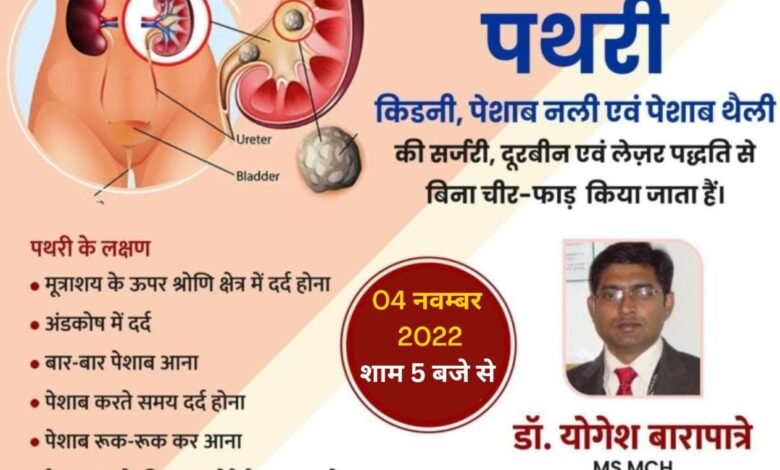 अग्रवाल नर्सिंग होम बसना में 04 नवम्बर को उपलब्ध रहेंगे डॉ. योगेश बारापात्रे यूरोसर्जन