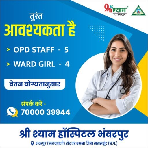 श्री श्याम हॉस्पिटल भंवरपुर आवश्यकता है : ओपीडी स्टाफ व वार्ड गर्ल सहित कई पदों पर भर्ती, अभी संपर्क करें