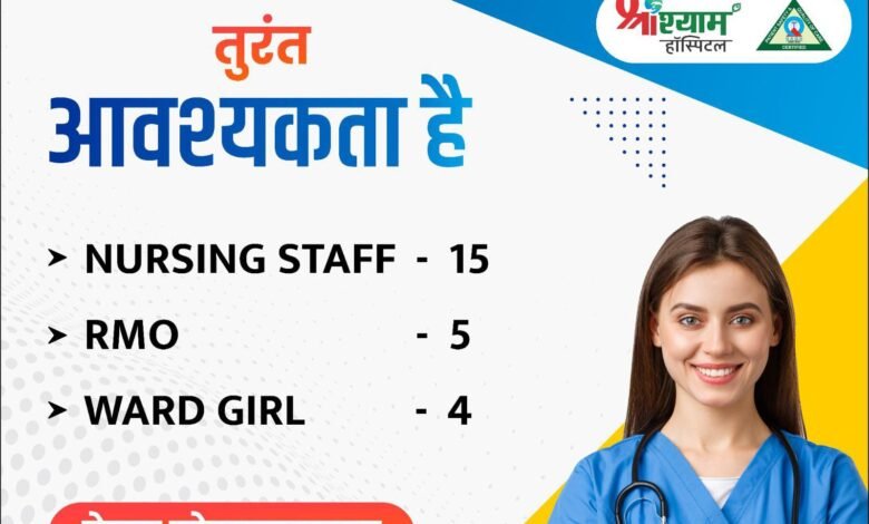 श्री श्याम हॉस्पिटल भंवरपुर में बंपर भर्ती: नर्सिंग स्टाफ, RMO और वार्ड गर्ल की आवश्यकता, अभी संपर्क करें