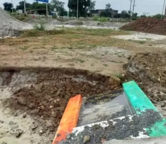 जिले में कांग्रेस कार्यालय का शिलालेख निर्माण होने से पहले ही हुआ धराशायी