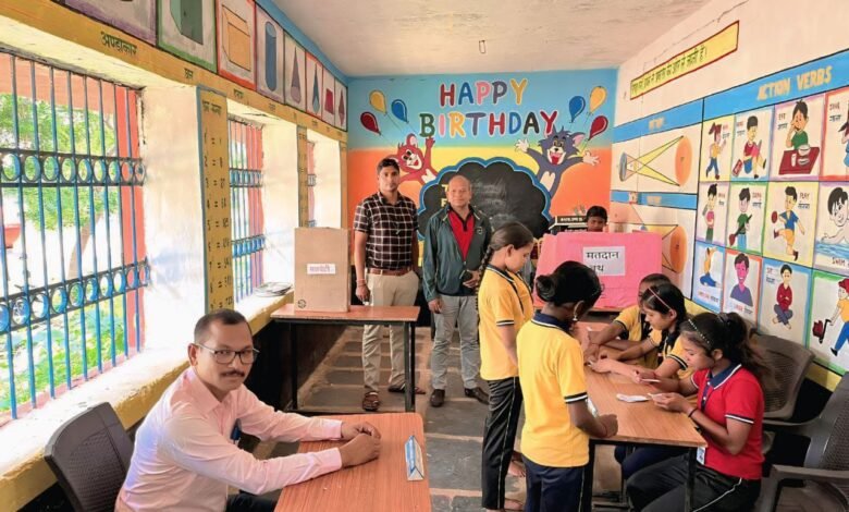 सरायपाली: अंचल के इस स्कूल में ई.व्ही.एम. और मतपत्र के द्वारा बाल संसद का गठन
