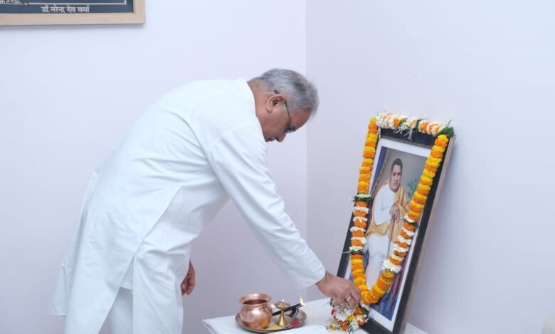 मुख्यमंत्री भूपेश बघेल ने आज यहां अपने निवास कार्यलय में बैरिस्टर ठाकुर छेदीलाल की पुण्यतिथि पर उनके चित्र पर पुष्प अर्पित कर उन्हें नमन किया।