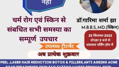 अग्रवाल नर्सिंग होम बसना में 23 सितंबर को उपलब्ध रहेंगे त्वचा रोग विशेषज्ञ डाक्टर गरिमा शर्मा झा