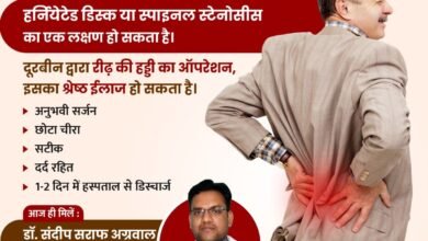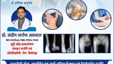 अग्रवाल नर्सिंग होम में प्रतिदिन उपलब्ध हड्डी जोड़ प्रत्यारोपण स्पाईन सर्जरी एवं आर्थोस्कोपी विशेषज्ञ डाक्टर संदीप सराफ अग्रवाल