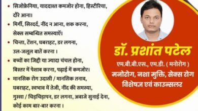 अग्रवाल नर्सिंग होम में प्रत्येक सोमवार मंगलवार बुधवार को 2 बजे तक उपलब्ध रहेंगे डाक्टर प्रशांत पटेल मनोरोग नशा मुक्ति सेक्स रोग विशेषज्ञ एवं काउन्सलर