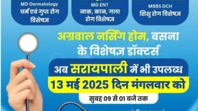 आज अग्रवाल डेंटल पॉलीक्लिनिक सरायपाली में उपलब्ध रहेंगे अग्रवाल नर्सिंग होम के विशेषज्ञ डाक्टर की टीम