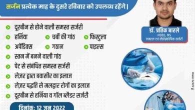 रविवार 12 जून को डॉ प्रतीक बारले जनरल एवं लेप्रोस्कोपी सर्जरी विशेषज्ञ ओम हॉस्पिटल सरायपाली में रहेंगे उपस्थित