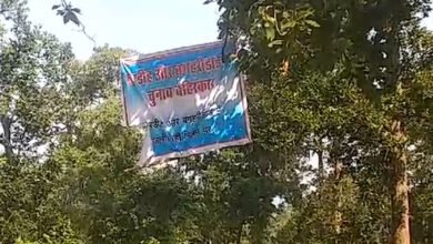 ग्रामीणों ने चुनाव बहिष्कार का बैनर लगाया