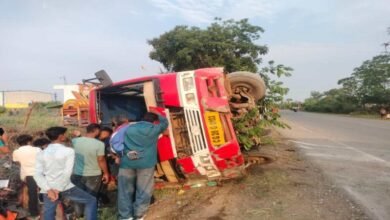 बारातियों से भरी बस पलटी…. ड्राइवर और कंडेक्टर फरार