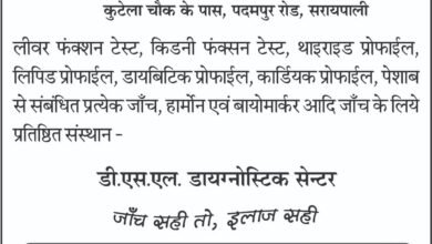सरायपाली:क्षेत्र में पहली बार DSLडायग्नोस्टिक सेंटर का शुभारंभ 11 से