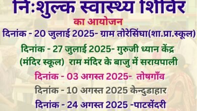 सरायपाली: अंचल के तोरेसिंघा तोषगांव केन्दुढार पाटसेन्द्री में नि: शुल्क स्वास्थ्य शिविर का आयोजन जानिए डिटेल्स