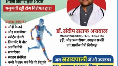 सरायपाली में आज उपलब्ध रहेंगे डाक्टर संदीप सराफ अग्रवाल हड्डी जोड़ प्रत्यारोपण आर्थोस्कोपिक विशेषज्ञ