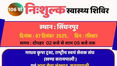 सिंघनपुर में 7 दिसम्बर को नि: शुल्क स्वास्थ्य शिविर का आयोजन