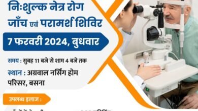 स्व. श्रीमती बनारसी देवी अग्रवाल जी के पुण्यतिथि पर अग्रवाल नर्सिंग होम बसना एवं अरविन्दो नेत्रालय रायपुर के द्वारा 7 फरवरी को नि: शुल्क नेत्र रोग जांच एवं परामर्श शिविर का आयोजन